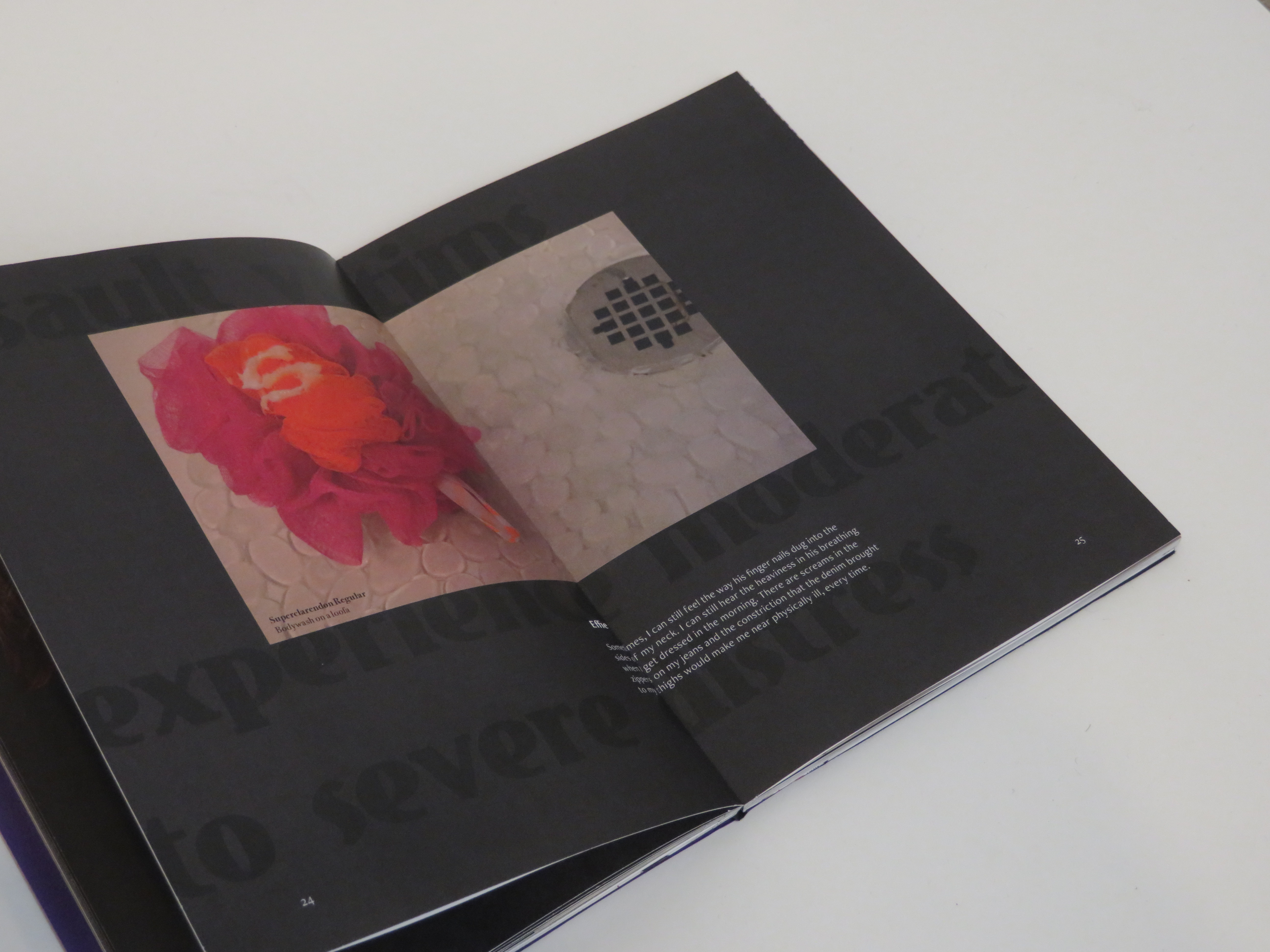 Finding the meaning of s is a type experiment book, that turned into something much more meaningful through my art direction. The book became an outlet for stories of sexual assault, domestic violence, and abuse survivors. The stories are told through writing submissions, collected and selected by me. The struggles faced and overcome in the writing are told through the letter S. The S became an actor for many people’s stories.